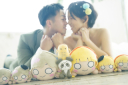 先ほどと雰囲気を変えてピンクのドレスと、それぞれタキシードにお着替え!