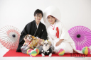 番傘をもっての撮影。お二人次第でさまざまなポージングを楽しんでください。