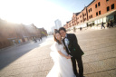 夕日をバックにお二人寄り添ってのお写真です!とてもおしゃれで素敵!