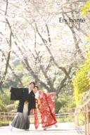 ご新郎様が、ご新婦様のために用意した、秘蔵のロケ地。満開の桜と色とりどりのチューリップがお二人を祝福しているかのようでした。