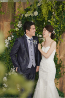 自然な雰囲気が素敵なショット。新郎新婦を背景にしてカジュアルな1枚も残して♪