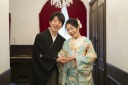 白とはガラッと印象がかわりとても鮮やかになりました黄色のドレスにネイビーのタキシード…まるであの作品のようでお綺麗です!