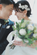白花のチャペルに、ドレスとタキシードがとっても映えますね♪