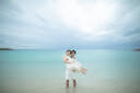 ブルーのカラードレスがとてもお似合いな新婦様!爽やかな雰囲気が沖縄に良くマッチしています♪