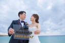 ビーチでお色直し!?オプションの【オーバーカラードレス】はウェディングドレスの上から着用するため外でもお色直しが可能です。イメージチェンジして撮影できます♪