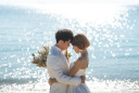 キラキラと輝く海をバックに撮影☆目線の先には新郎さまがいらっしゃるのでしょうか・・・?♡