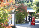 川上別荘入り口の門付近の紅葉も色が変わり始め綺麗になってきました。お2人とも素敵な笑顔とかわいらしい小物でとっても素敵なお写真になりました!
