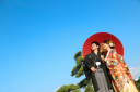 2着目は白無垢に着替えて護国神社での撮影です。一般の参拝者も少なく、落ち着いた雰囲気で撮影できました。