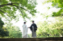 縁側に並んで座っての一枚。お二人の自然な笑顔が出る撮影スポットの一つです♪