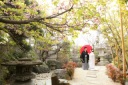 仲良く手を重ねる構図です♪縁側から見える緑がとても青々としています。四季亭は、敷地が広くありませんので、のんびりと落ち着いた雰囲気で撮影をすることができますよ♪