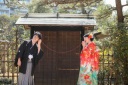 見浜園にたくさん緑があります、また広々としているので開放的な写真をたくさん撮ることができました!青色の色打掛もとっても素敵♡ サムシングブルーですね♡