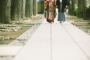 能舞台をバックに撮影。お二人の仲の良さが伝わります♪