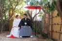 撮影小物は無料お貸出ししています。お面の他にガーランド、夫婦扇子、フーケなどもございます。