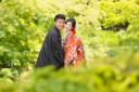 モミジの新緑が色打掛によく映えます✨庭園では定番の撮影スポットです