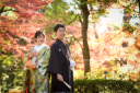 神社には、赤やオレンジのもみじもあります♡白無垢が映えますね♪
