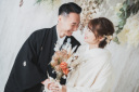 お散歩中に見つけたお花をバックに撮影。番傘の色も変えて撮ることで違った印象の写真が増えます。