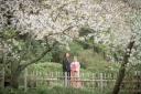 両手を広げてミッキーポーズ!二人の楽しい雰囲気と庭園ならではの一枚です♪