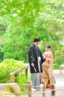 新緑がとても綺麗でした。ベンチに座って、とても美しい一枚に仕上げていただきました。