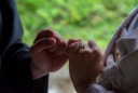 白い傘を持って、歩きながら撮影しました♪自然な笑顔がのこせました。