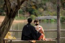 三渓園名物のねこちゃんを発見!突然の出会いにお二人の表情もほころびます♪