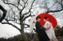 例年より少し早く開花した紅梅が、白無垢にとっても映えますね!
