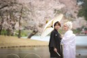 桜の木越しに撮影させていただきました♪シックな一枚です