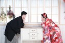 金屏風の前でお辞儀のポーズ!定番だからこそ美しさが際立つポーズです♪