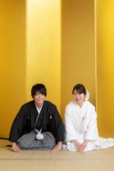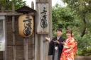 青々とした竹の前での基本ポーズです。「ザ、和装」ですがお二人の笑顔で、柔らかく爽やかなお写真に仕上がっていますね。ご新婦様のかつらがとてもお似合いで素敵です!