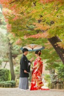 ご新婦様お一人のしっとりとしたポーズです。色打掛の裾を広げて一層華やかな雰囲気です