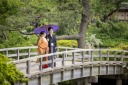 春日局のお茶室である聴秋閣をバックに相合傘のショット!