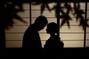 手作りの夫妻の扇子をもって可愛く寄り添っての一枚!