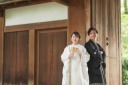 紅葉の名残が、白無垢に華やかさをプラスしています。