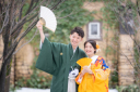 鮮やかな色打掛と紋付袴の撮影です。それぞれ傘をお持ちいただきました。