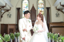 純白の白無垢とガーデンの緑が良く合います!白無垢に合わせて綿帽子のご用意もございます