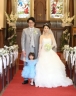 茶色を基調とした、あたたかみのあるチャペルなので、ウェディングドレスの色味がとても映えます。