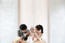 ご新婦様のカーキのドレスと、ご新郎様のベージュがとってもマッチしていて可愛いです♡