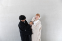 洋装では自然体な2人のショットを撮っていきます。2人で素足になり、新郎様はジャケットをぬいでラフ感をだしました。素の感じがでていていいですよね。