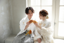 とても素敵な美男美女の新郎新婦様♡ワンちゃんをたかいたかーい♪