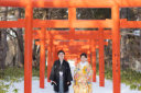 札幌の紅葉シーズンは、10月中旬といわれていますが、木によってそれぞれ期間が変わってくるんです!オレンジの紅葉と色打掛がお似合いです^^