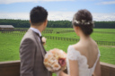 輝く太陽の光を一心に浴びるひまわり畑。ビタミンカラーからパワーチャージ!水色の空にかかるモクモクの雲の背景がお二人を主役にしてくれます☀