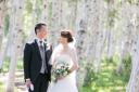 新婦様から新郎様の背中をぎゅっと抱きしめ、笑顔のなかよしショットです♡