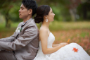 開拓の村の馬車鉄道の線路の上を手を繋ぎ歩くお二人を撮影。とても楽しそうですね♪