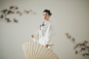 登米市の紅葉は11月上旬〜中旬が見頃です。白無垢と紅葉のコントラストが綺麗です。