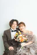 凛々しい新郎様と、微笑みながら新郎様にもたれかかる新婦様。ゆったりとした空気が伝わってきます