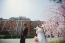 おふたりが見据える先は、明るい未来。背景に咲き誇る桜のように、明るく素敵な家庭を築いてください^^