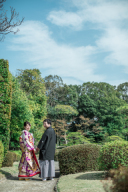 お二人ともとてもいい表情です!和装に新しくできたグリーンウォール、ぴったりなんです♪