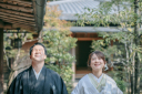 正面の緑の背景とお二人の自然な表情がとても素敵ですね!