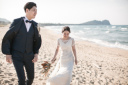 「友泉亭」さんの看板の前でお二人が寄り添ったポーズを。とても素敵な雰囲気ですね!