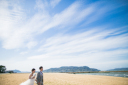 海岸へ向かう途中には美しい松林や緑があり、白いドレスが映えます。