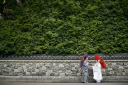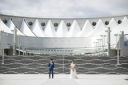 お二人の立ち姿をシンプルな白壁で撮影スタート。グリーンが入って爽やかな雰囲気です!